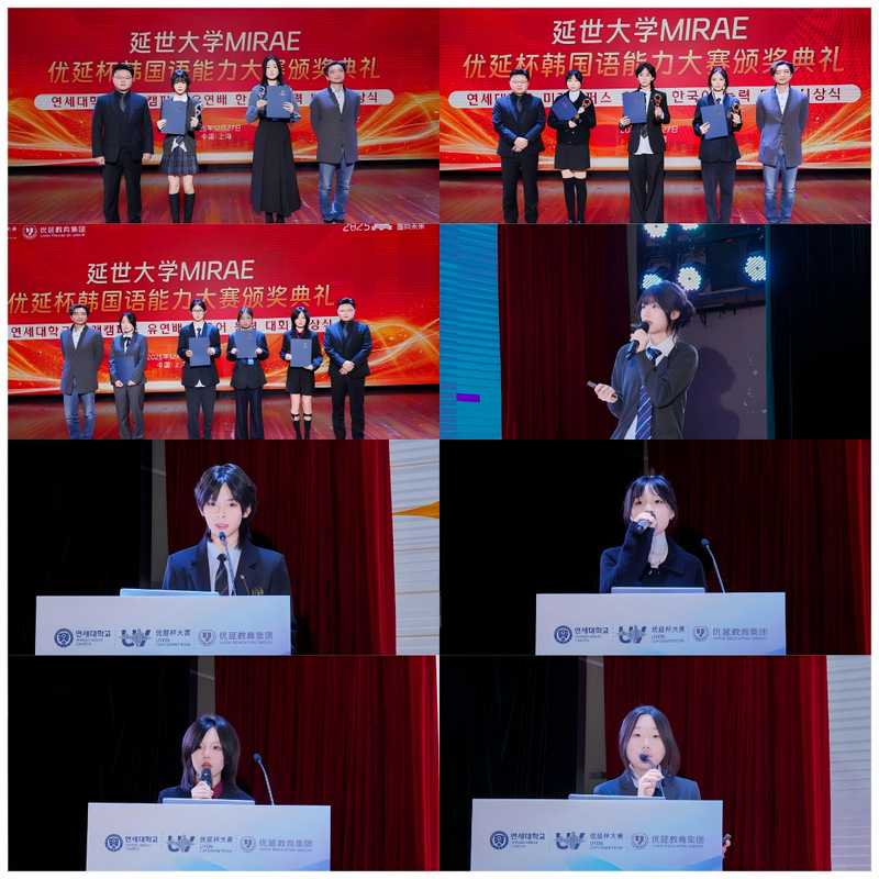 2025年12月27日,在第二届延世大学MIRAE优延杯韩国语能力大赛暨第一届优延杯国际舞蹈大赛中,我校韩语专业学生表现出色,凭借扎实的语言功底与出众的艺术才能,从海选的1000多名选手中脱颖而出,共计9位同学成功晋级决赛,并在决赛中斩获多个奖项,展现了我校学生全面发展的优秀素养和卓越的竞争力。