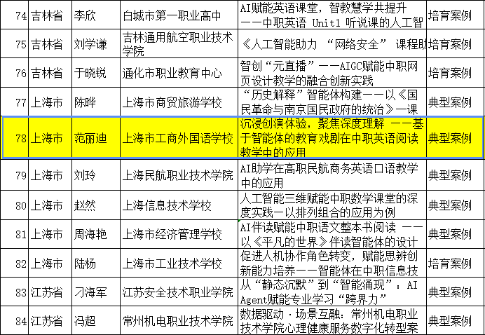 此次案例成功入选全国典型案例,不仅是对范丽迪老师个人教研创新能力的高度认可,更是对我校谢永业劳模创新工作室暨名师孵化工作室在“AI + 职业英语教学” 领域探索成效的肯定,彰显了学校在教师专业发展与教育教学改革方面的扎实成果。