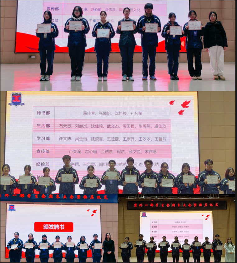 大会伊始,即将离任的学生干部依次上台,深情分享了自己在学生会工作的收获与感悟。他们回顾了从新人到骨干的成长历程,言语中充满对学生会的眷恋与,现场气氛温馨而动人。