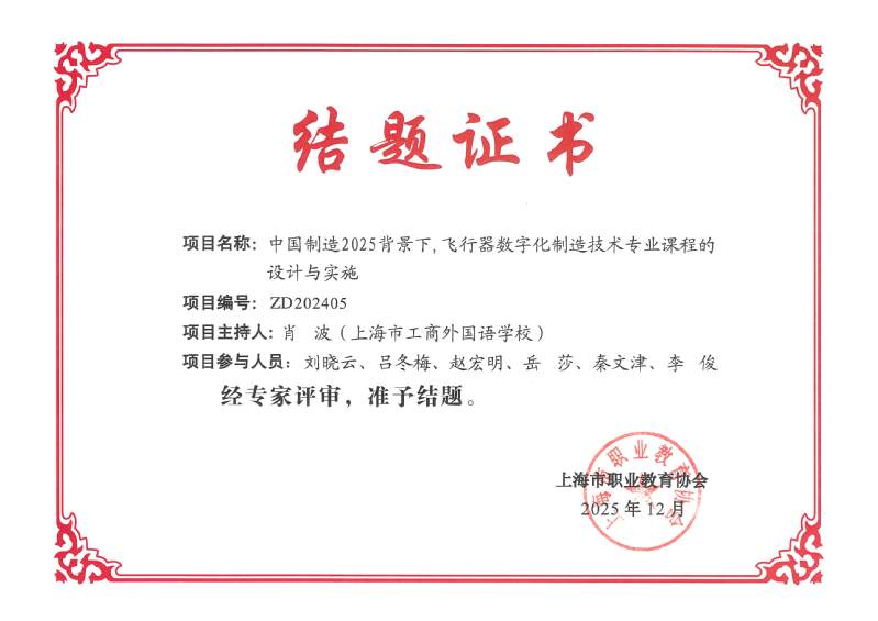 三项课题分别是由肖波老师负责的“中国制造2025背景下飞行器数字化制造技术专业课程的设计与实施”、吕冬梅老师主持的“基于数字胜任力的计算机专业金课建设范式实践研究”和范丽迪老师主持的“生成式人工智能赋能中职英语体验式学习的实践研究”。其中肖波老师主持的课题为重点课题。此次三个课题的高质量完成,不仅体现了我校教师深耕教科研一线的专业精神,也反映了学校持续推进课程改革、深化产教融合、服务高质量发展的坚定步伐。学校将持续鼓励和支持教师开展教育教学研究,推动更多成果转化为育人实效,助力高素质技术技能人才培养再上新台阶。