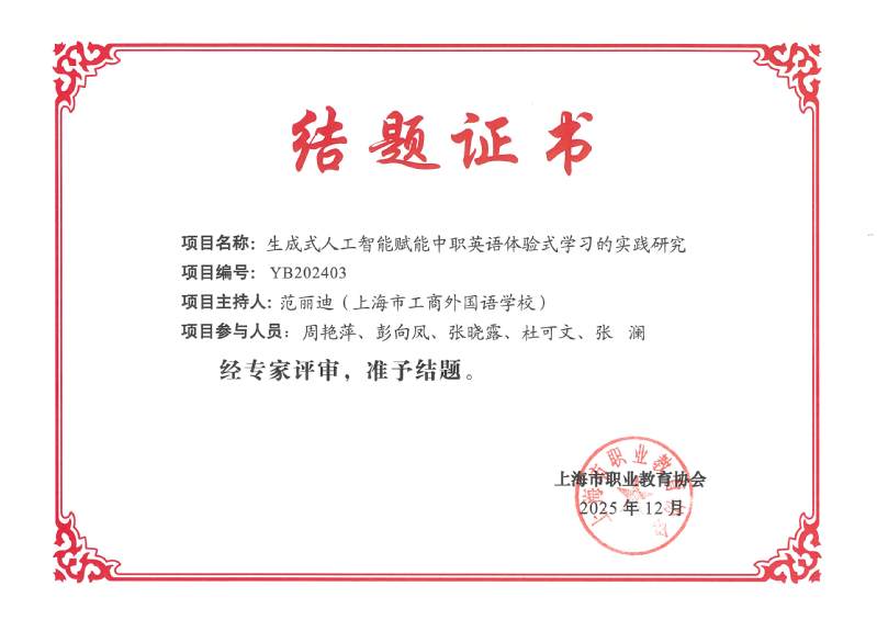 近日,2024-2025年度上海市职业教育协会立项课题结项评审结果揭晓,我校三项课题全部顺利通过结项验收,又一次彰显了我校在职业教育教学改革与科研实践领域的扎实成果。