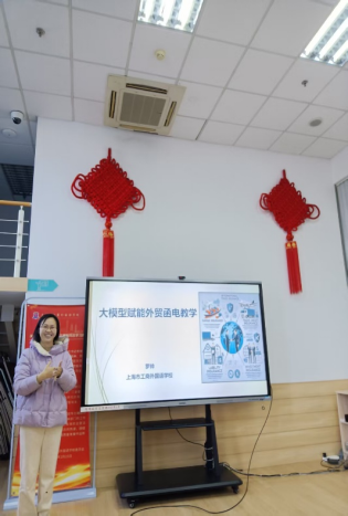 活动现场,工作室成员围绕“人工智能赋能语言教学”主题展开深度案例分享,呈现了理论与实践深度融合的亮眼成果:聂焱老师从词汇建模、情境创设、学情调查三个维度,详解AI工具在西班牙语备课中的落地应用,有效提升了教学针对性;罗帅老师聚焦外贸函电教学痛点,展示了大模型在格式规范、专业术语精准匹配等方面的赋能价值,助力学员提升职场语言应用能力;彭向凤老师以英语学习活动观为指导,分享AI辅助下的分层学习任务设计与课堂实践,实现了因材施教的教学创新;杜可文老师结合口语实训与跨文化交际教学实践,交流了AI工具在提升学员语言应用能力中的实战心得;王蔓维老师则分享了借助“Pitch Perfect”等AI工具,助力学生完成跨境电商英语直播撰写与展示的教学实践,切实强化了学员职业技能构建。