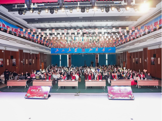 知音合唱队用合唱《世界赠予我的》《上春山》诠释了岁月的温柔馈赠与春日的蓬勃朝气;教务学生工会组独唱《方的言》用歌声将那份关于故乡、成长与融合的独特情怀娓娓道来。基础二部工会组展示了舞蹈《欢乐颂》,别出心裁的表演为大家带来了耳目一新的体验;商外一部工会组用小组唱《小美满》提醒我们去发现身边那些简单却珍贵的小确幸;商二国际工会组表演的情景剧《我的三重“高光时刻”》,带大家一同见证在教书育人、团队协作、自我超越的道路上,那些闪耀着智慧和汗水的难忘瞬间;闵行校区工会组的舞蹈《踏绿赋新》,结合了现代与怀旧,演绎了豪迈与灵动,传递了奔放和细腻;基础一部工会组带来的趣味朗诵《我爱上班》,以幽默风趣的语言、昂扬饱满的姿态,道出了职场奋斗的真实滋味,引得现场掌声连连;知行舞蹈社、知道读书社共同演绎的《书香无影,华夏情长》,以小剧场+舞蹈的形式,呈现了一场文化与艺术交融的盛宴;校领导和行政第一、第二工会组带来的合唱《我们都是追梦人》,把对校园的热爱、对同事的温情、对马年的期许都融进了歌声里。
