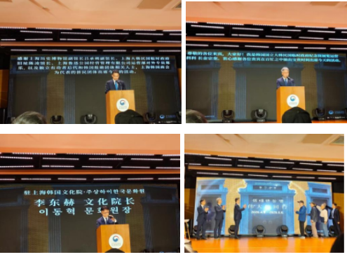 两位老师首先观摩了特展开幕式。开幕式上,韩国驻上海总领事馆副总领事‌崔载河、韩国国立大韩民国临时政府纪念馆展览运营科科长金宗奎、驻上海韩国文化院院长李东赫分别致辞。他们回顾了中韩两国在抵抗侵略、争取民族独立过程中结下的深厚情谊,强调上海大韩民国临时政府旧址作为两国共同历史记忆的重要象征,将持续为促进双边人文交流发挥桥梁作用。