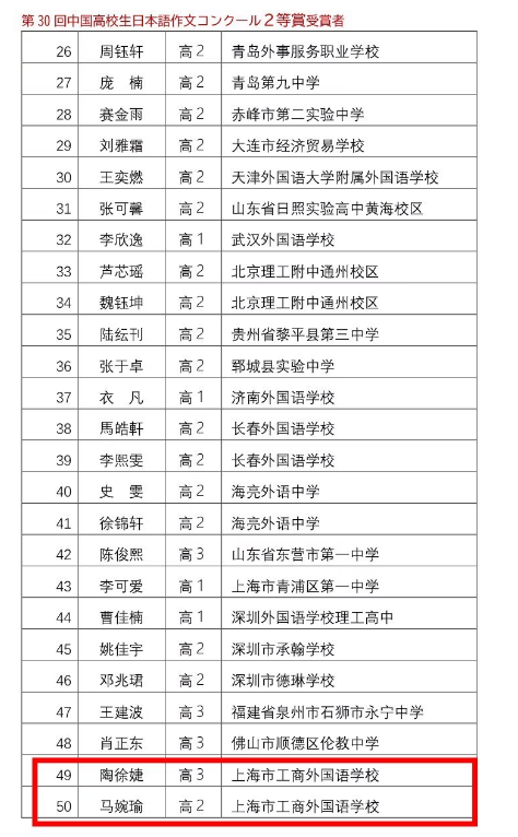 本项比赛是目前全国高中日语界规模最大、范围最广的作文比赛。参赛者来自全国各省市优秀学校,其中不乏武汉外国语学校、上海甘泉外国语中学、成都外国语学校等重点高中。作为为数不多的中职校参赛,我校学生能获此殊荣难能可贵。