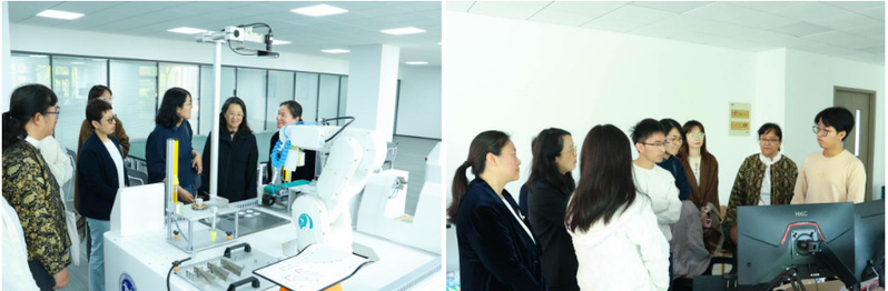 会前,上海市工商外国语学校一行实地参观了上海师范大学天华学院东校区人工智能研究院。老师们先后观摩了往届学生的优秀作品、机电实训设备,直观感受学院对实践教学的高度重视;同时详细了解了学校支持毕业生自主创业的创新举措——为有想法的学生提供场地打造校企一体化平台,为学生实习、创业提供坚实保障,目前已有多个场地投入使用,为学生成长搭建起广阔舞台。此外,还参观了金工实习场地,近距离感受学校完善的实践教学体系。
