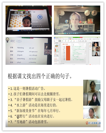 国际教育部自新学期开始进行线上汉语教学,为德国、澳大利亚、韩国、白俄罗斯等国学生提供包括商务汉语、汉语听说训练及HSK辅导在内的多种汉语课程,以此满足他们学习中文的愿望以及提升中文水平的需求。