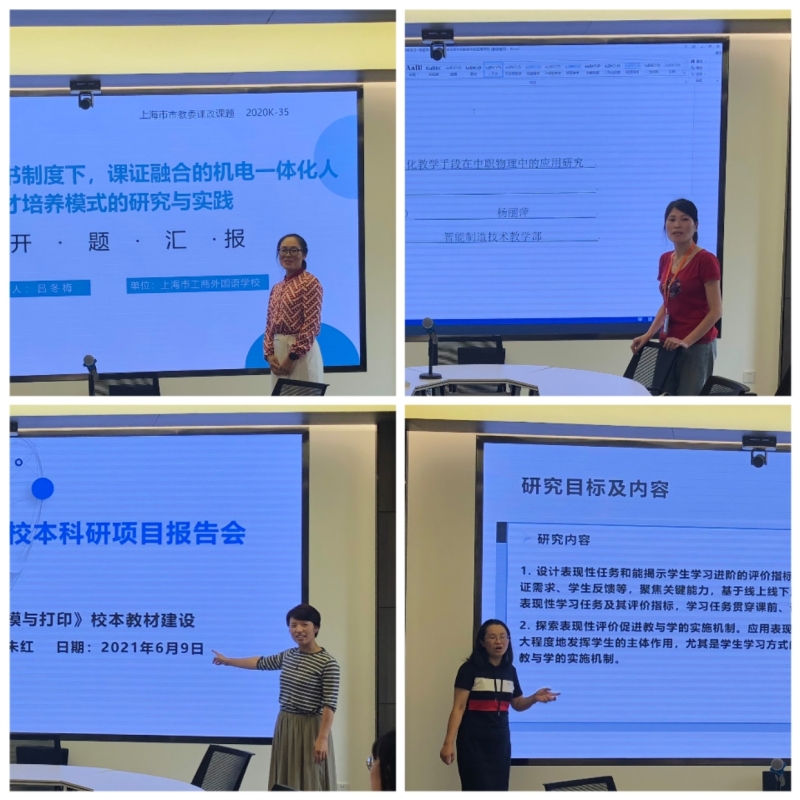 活动分为两个部分,首先是申报了本期校本课题和校本教材的负责人进行“内部开题汇报”,各负责人按照要求将精心准备的课题或教材申报背景、必要性、方法和预设目标图文并茂地展现出来。汇报题目见附表: