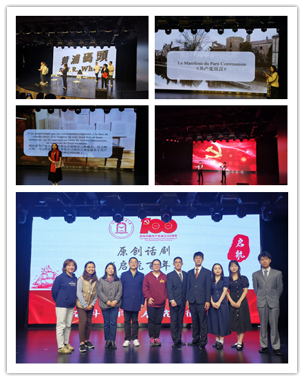 1919年3月17日至1920年12月底,共计20批约1600名青年从黄浦江畔出发赴法勤工俭学,这场席卷全国、轰轰烈烈的赴法勤工俭学运动,是中国近代史的一座丰碑,也是中国共产党创建史的重要一页。《启航百年》党史剧以一群法语专业党员大学生在上海黄浦码头开展党史学习为主线,回顾了一百多年前那场前所未有又声势浩大的留法勤工俭学运动。剧中深情讲述了蔡和森、向警予、赵世炎等多位著名革命英烈留学救国的故事,生动展现了向警予刻苦学习法语阅读马克思著作,蔡和森、赵世炎等在Montargis公学探讨《共产党宣言》等场景。剧末,在孩子们的小提琴伴奏中,全体演员用中文和法语激情演唱《国际歌》( L’internationale),将全剧气氛推向高潮!全体党员深受感动与鼓舞!