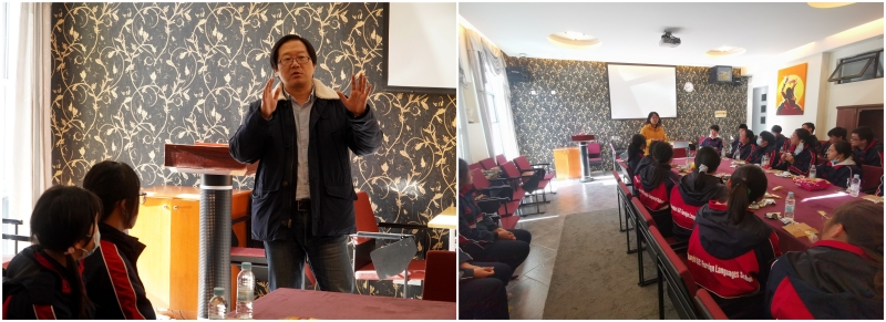 本次交流活动受到贯通高校领导、老师的高度关注。贤达学院李强副院长出席欢迎仪式,为学生们介绍外语学院的专业设置和崇明校区的基本规划。德语系负责人吴琼老师针对同学们提出的问题,从德语专业班级设置、开设课程、国际交流、校园生活等方面进行全面而细致的解答,让学生们对高校的学习和生活有大致的了解。此外,贤达学院中来自我校中本贯通班的同学分享他们的德语学习经验,并提出建议和期待。除此之外,学长、学姐们还给2103班的学生们准备了贴心的欢迎信和小礼品,让大家对大学生活充满了期待和憧憬。交流活动后,学生们在吴琼老师的带领下参观了美丽的校园,都被校园内托斯卡纳风格的优美建筑深深吸引。
