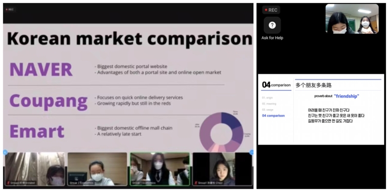 为帮助中韩学生学会在跨文化背景下互动,促进多元文化理解,拓展国际视野,培养两国学生面向未来的全球胜任力,运用他们的知识和技能分析现实世界中的焦点问题,我校国际教育部教师们积极推动ICT学生团队与韩国安养外国语高中的同学们于2021年11月30日下午在线上开展第三届中韩学生论坛活动。出席本次活动的有国际教育部梁璜和汪旸老师。