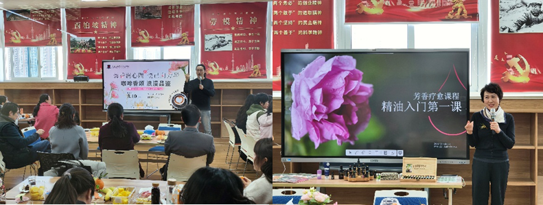 3月10日的咖啡知识讲座,专业讲师讲解了咖啡起源、品种甄选、冲泡技巧等知识,现场还组织了咖啡品鉴互动,让女教工在醇厚咖香中放松身心。3月11日的芳香疗愈讲座,专业芳疗师讲解了植物精油认知、功效原理,分享了精油选择与香薰、按摩等日常使用方法,现场设置闻香体验和简易芳疗手法教学环节,还带领教职工亲手制作精油鼻通,让大家在动手实践中近距离感受芳疗魅力。